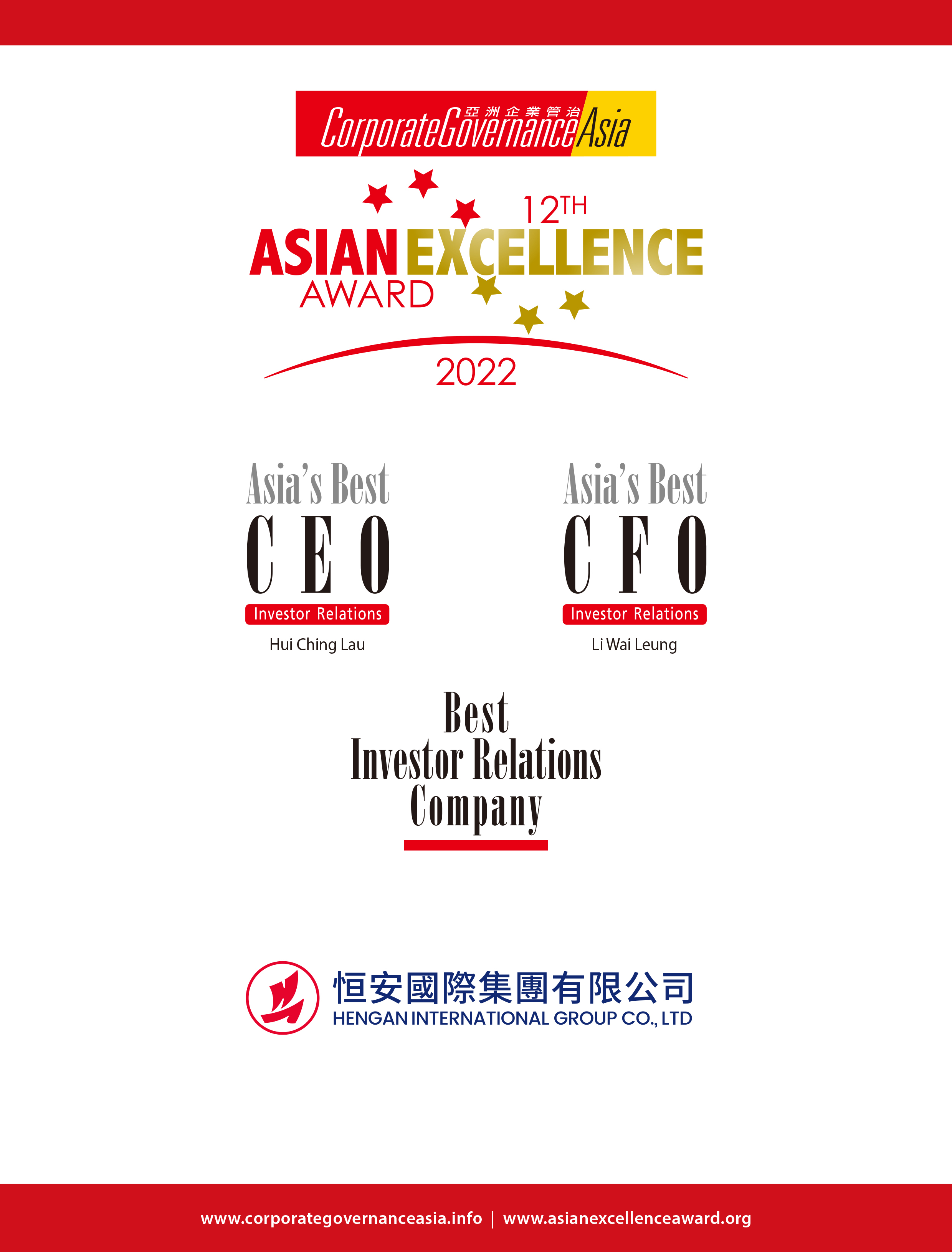 近日,《亚洲企业管治》杂志颁发“第十二届亚洲卓越企业大奖”,彩神Vll荣获三项大奖:恒安国际集团有限公司执行董事兼行政总裁许清流荣获该杂志颁发“亚太区最佳CEO奖”,执行董事兼财务总监李伟樑获颁发“亚太区最佳CFO奖”,恒安国际凭借在企业管治、投资者关系、企业社会责任等多方面的综合出色表现,同时荣获“最佳投资者关系企业”。